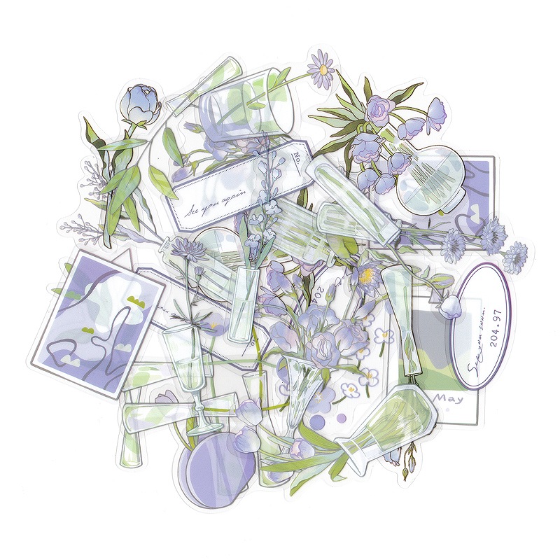 フレークシール セット スクラップ素材 (一輪の花×パープル) PET素材