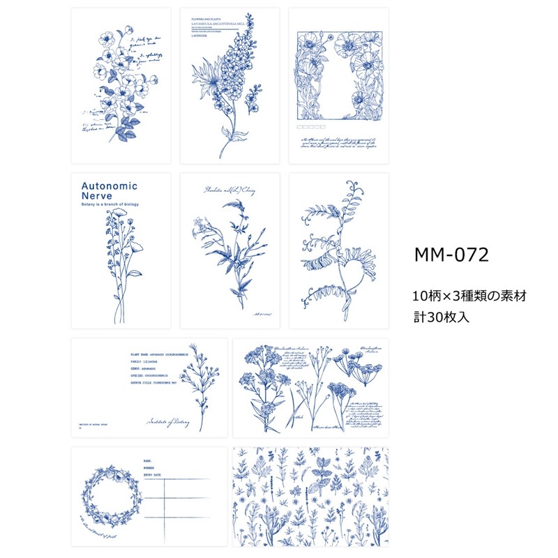 デザインペーパー セット スクラップ素材 (スケッチシリーズ×ボタニカル×ブルー)