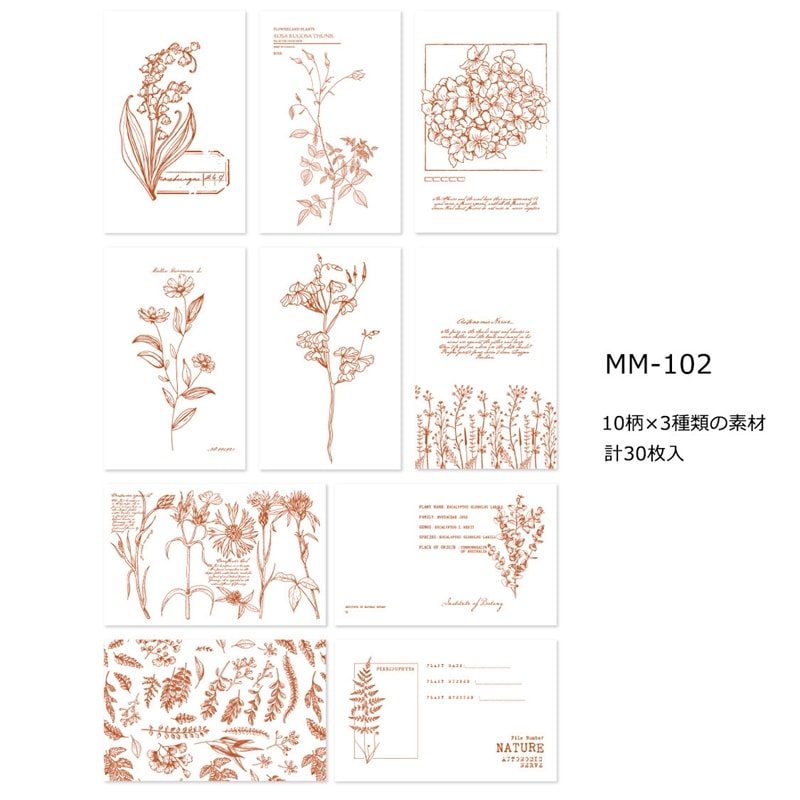 デザインペーパー セット スクラップ素材 (スケッチシリーズ×ボタニカル×レッド)