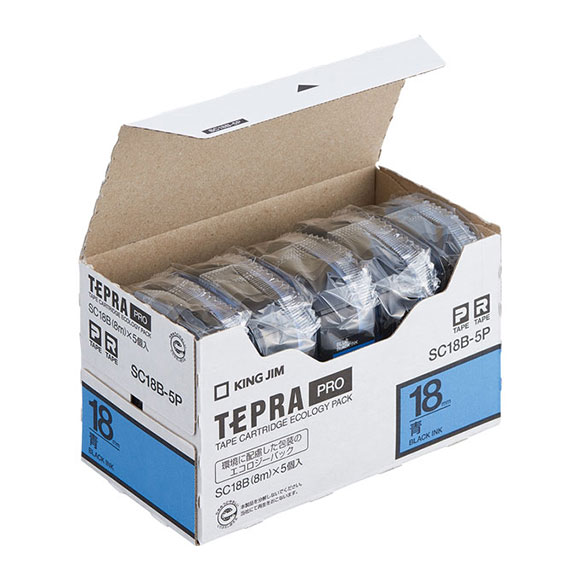[SC18B-5P] テプラPROテープカートリッジ 18mm エコパック(5個入) カラーラベル(パステル) 青/黒文字