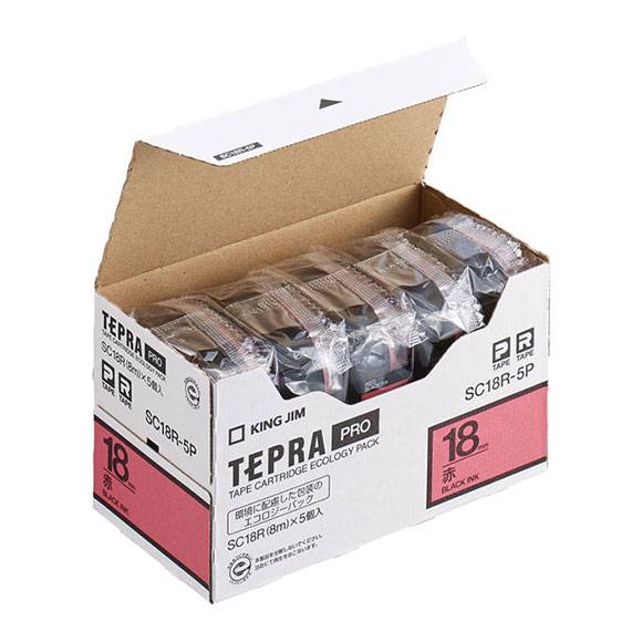 [SC18R-5P] テプラPROテープカートリッジ 18mm エコパック(5個入) カラーラベル(パステル) 赤/黒文字