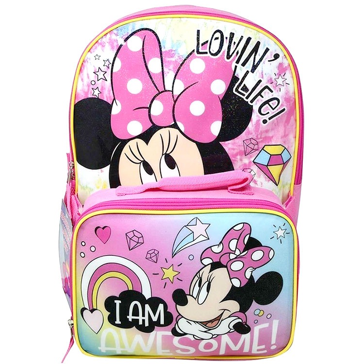 リュックサック ミニーマウス Lサイズ ランチバッグ付き 女の子 リュック 大きめ 子供から大人まで キャラクター 通学バッグ
