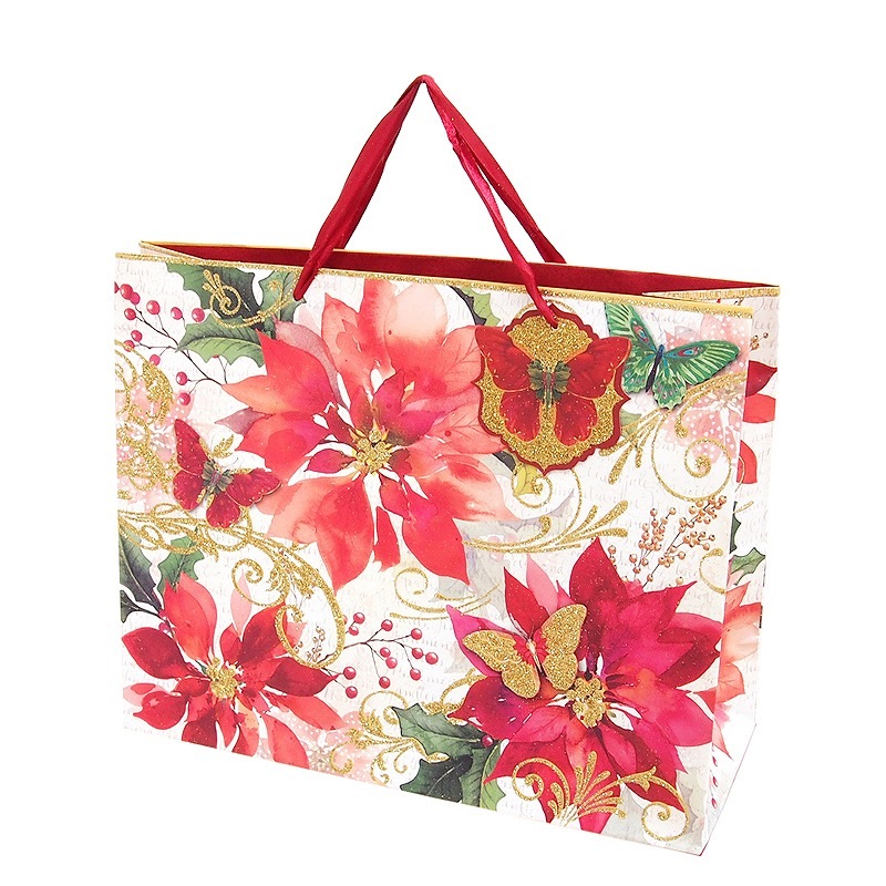 Punch Studio 【クリスマス】 ギフトバッグ | 紙袋 Lサイズ タグ付き (ポインセチア×ピンク)