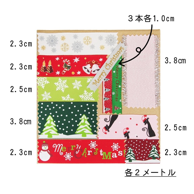 ラッピング用 リボンセット 【クリスマス】 11種類 長さ各約2メートル (オリジナルセット) Dセット