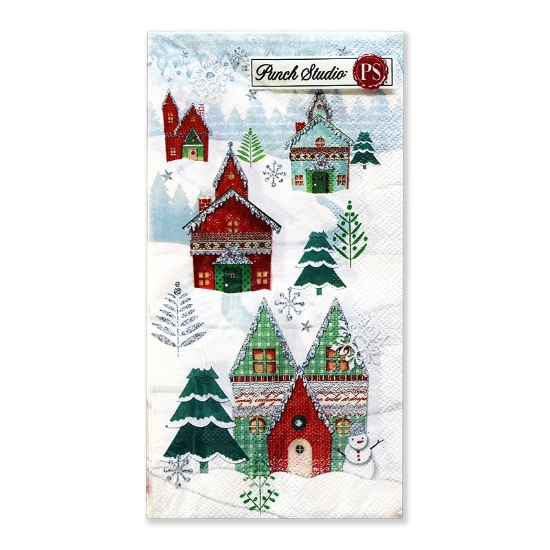 【掘り出し物・訳あり品】Punch Studio 【クリスマス】 ペーパーナプキン LLサイズ (雪の街×雪だるま)