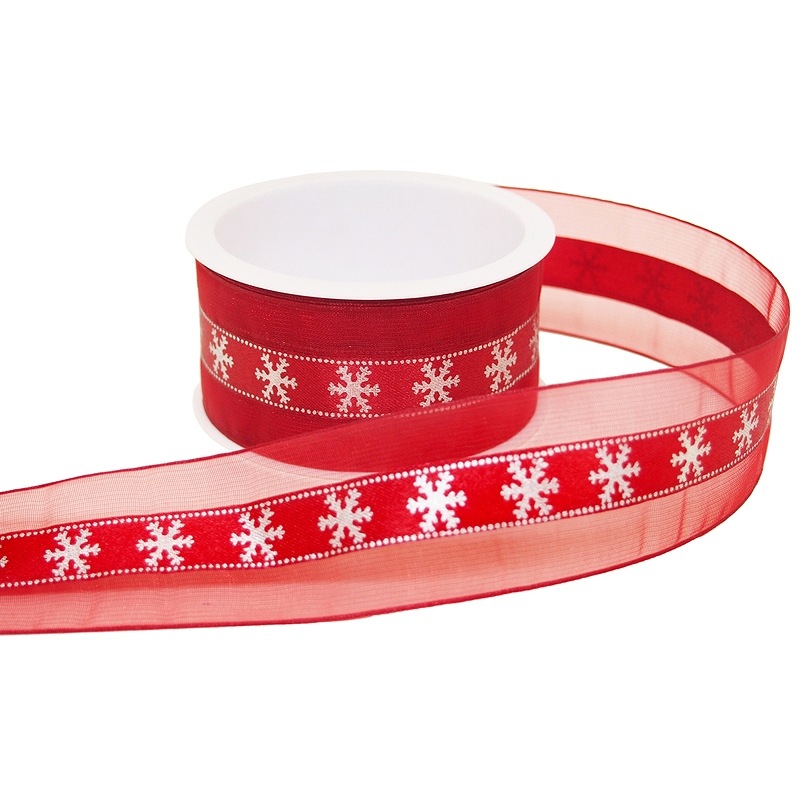 ラッピング用リボン プリントワイヤリボン (赤×雪結晶)