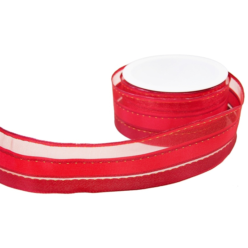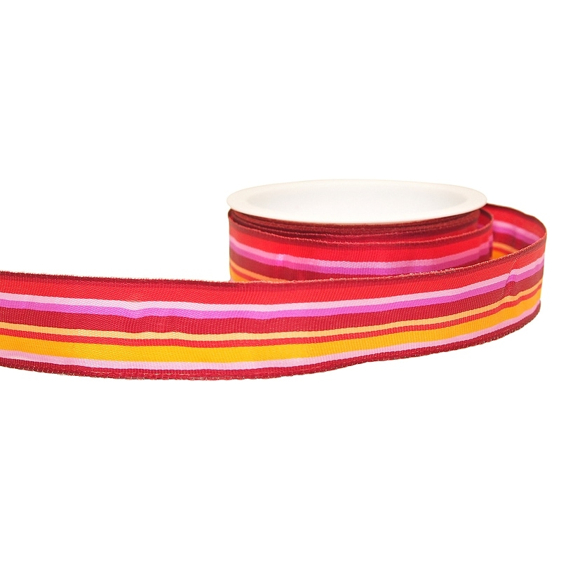 ラッピング用リボン プリントワイヤリボン (ストライプ×レッド)