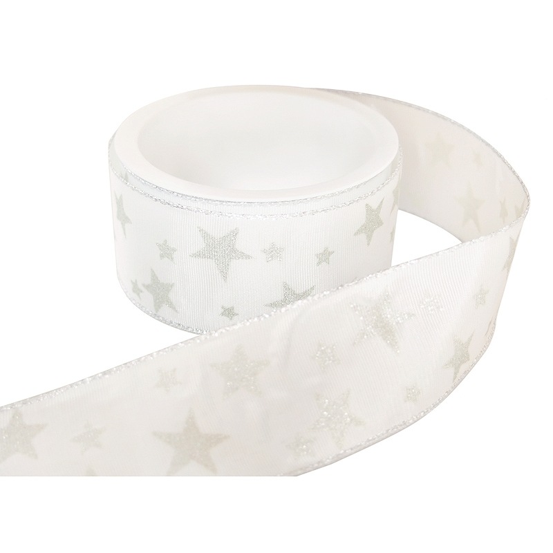 ラッピング用リボン プリントワイヤリボン (銀×星)