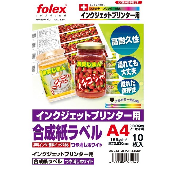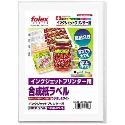 インクジェットプリンター用 合成紙ラベル つや消しホワイト A4 10枚入 フォーレックスJLP-10A4MW