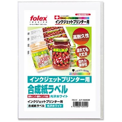 インクジェットプリンター用 合成紙ラベル 光沢ホワイト A4 50枚入 フォーレックスJLP-50A4GW