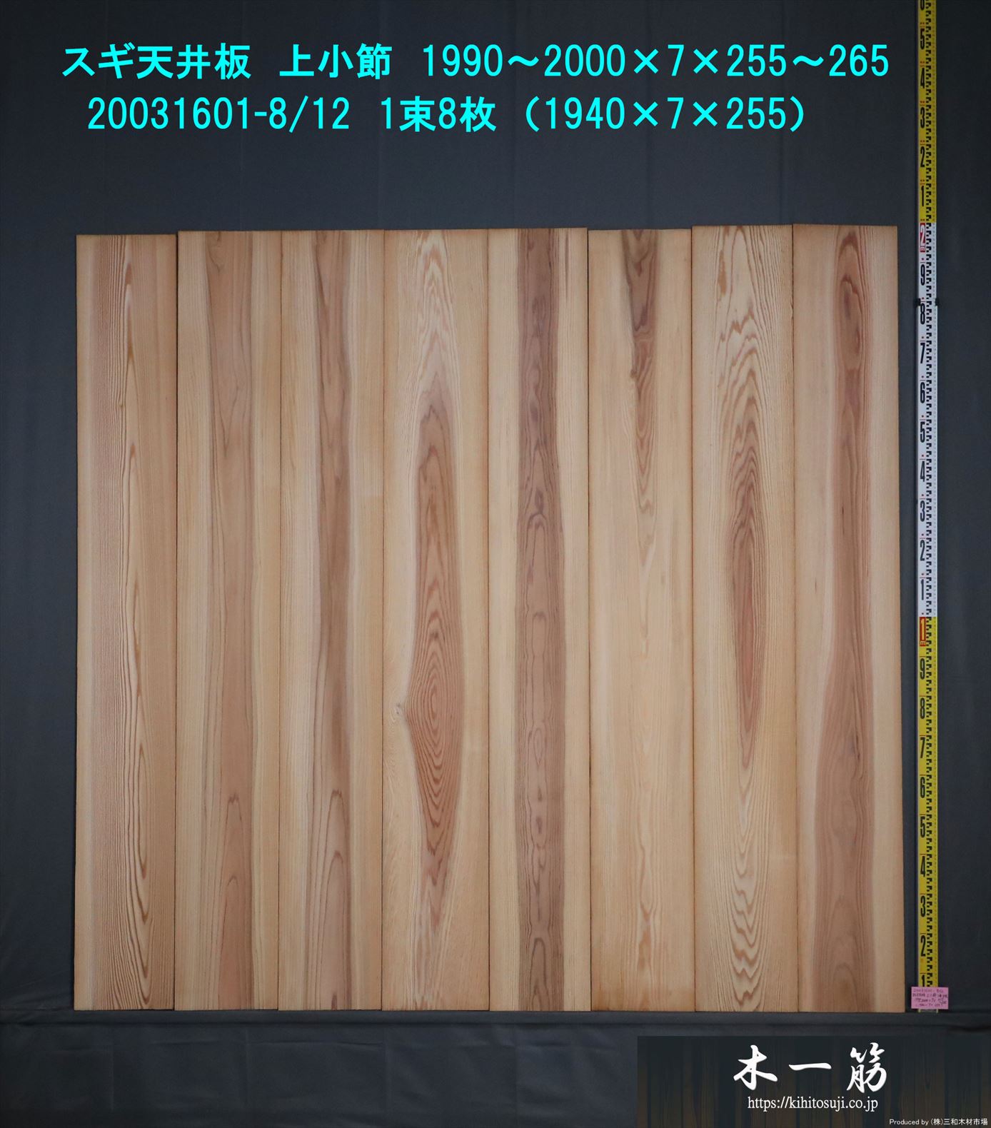 条件付き 送料無料 杉 天井板 上小節 1980~2000×7×260~270mm 8枚入り 20031601-1/12