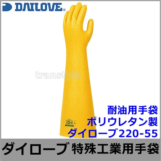 ダイローブ 耐油用ソフト手袋 220-55 裏地有 ロング55cm シワ状滑止タイプ ポリウレタン製 (1双)日本製【作業用/工場...