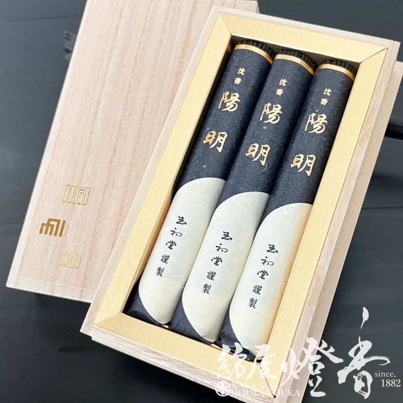 高級進物線香『雄大な薫り【沈香・陽明(ようめい)-JINKO・YOMEI-】桐箱短寸3把入[有煙]』玉初堂