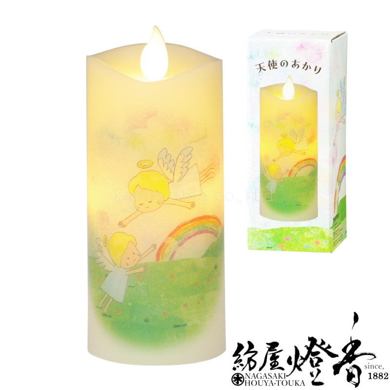 LEDローソク『可愛らしい天使【天使のあかり・虹空/Sサイズ】電池式ろうそく紙箱入[揺らぐ炎]』カメヤマ