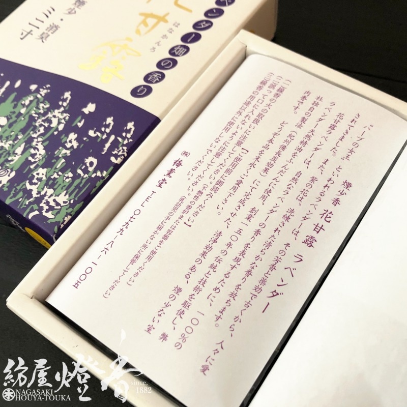 ミニ線香『花甘露(はなかんろ)【ラベンダー】ミニ寸バラ詰[少煙/消臭/天然香料]』梅薫堂