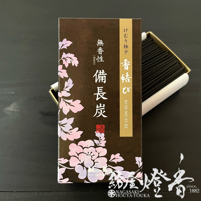 お線香『香結び(こうむすび)【備長炭(びんちょうたん)】短寸バラ詰[微煙/無香性]』日本香堂
