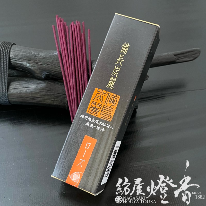 お試し/配り物『備長炭麗(びんちょうたんれい)【ローズ】短寸バラ詰小箱[少煙/消臭]』梅薫堂