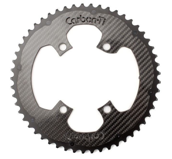 Carbon Ti カーボンチタン 4アーム X-CarboRing アルミ(シルバー)+カーボン フロント チェーンリング アウ...