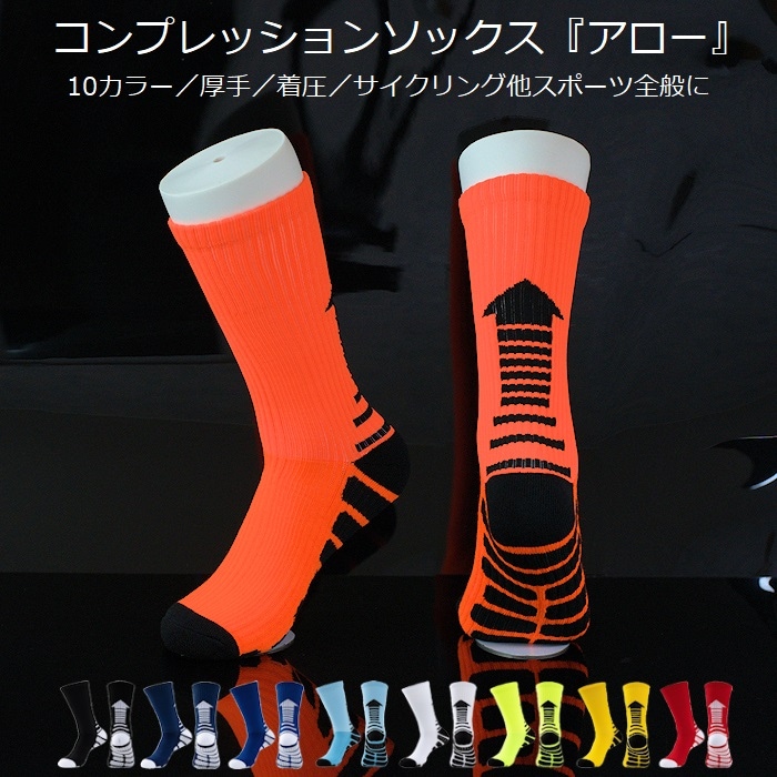 サイクルソックス コンプレッションソックス 『アロー』 厚手 着圧 10カラー フリーサイズ 24-28cm ロードバイク クロス...