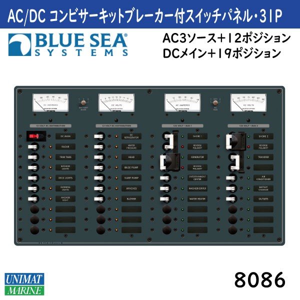 AC/DC コンビサーキットブレーカー付 スイッチパネル 8086 Blue sea ブルーシー