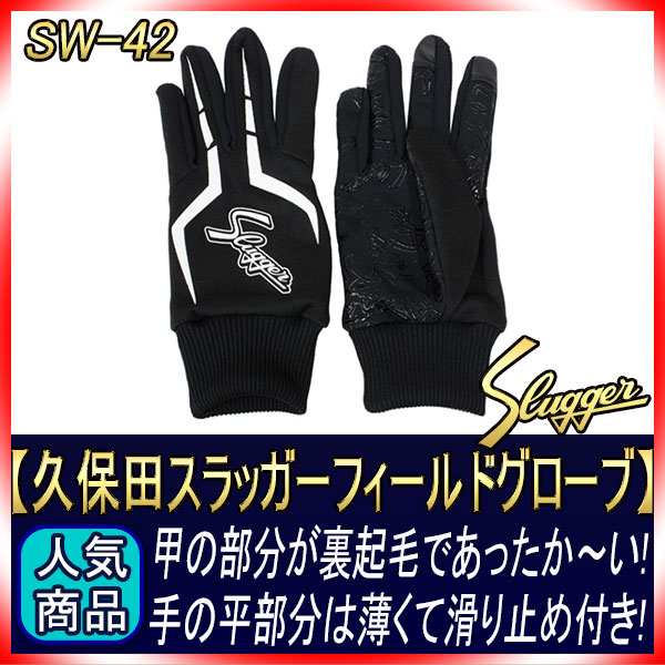 メール便のみ対応 久保田スラッガー SW-42 ブラック Mフリー 裏起毛で暖かい 素振り可能 防寒 フィールドグローブ 手袋 G...
