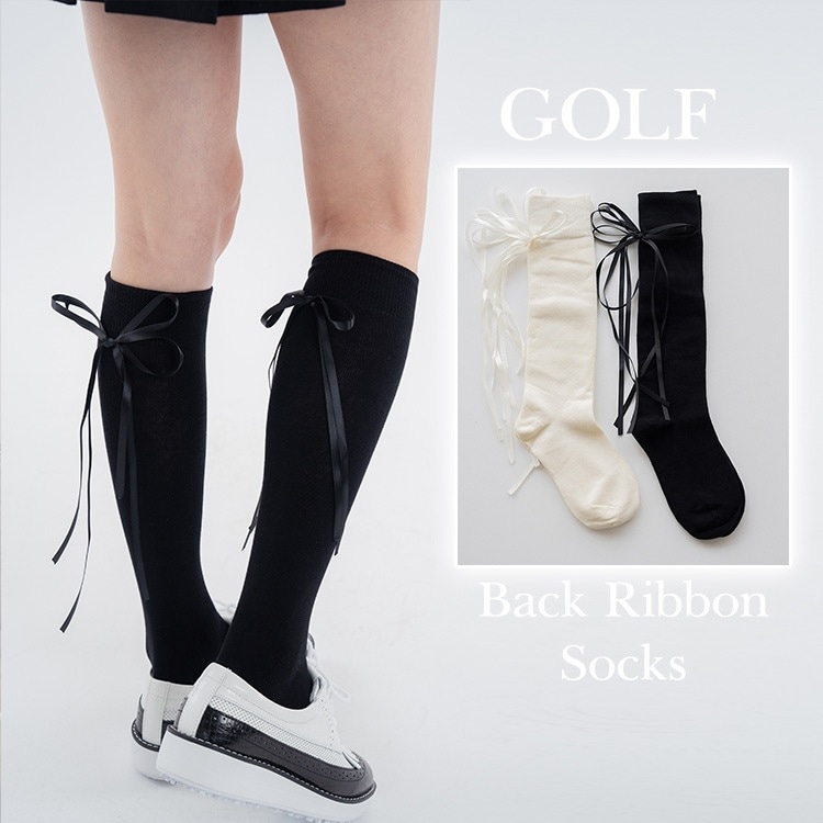 韓国ゴルフウェア バックリボン ハイソックス