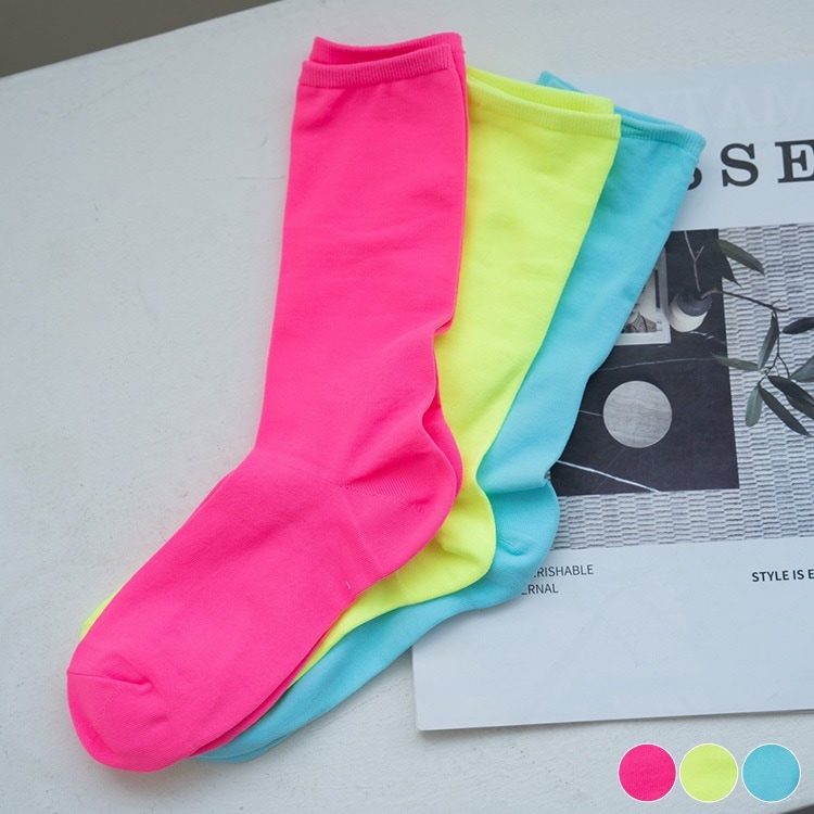 韓国ゴルフウェア ネオンカラー ミドル ソックス
