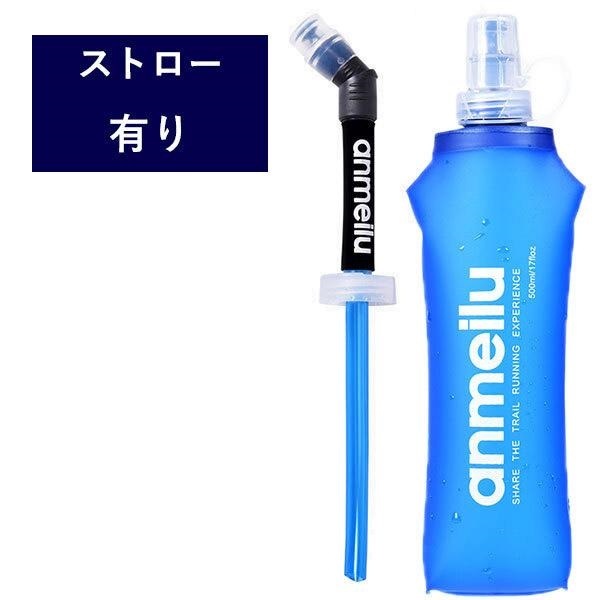 折り畳み ウォーターボトル 給水ボトル ポータブル 水筒 ストロー付き 500ml 携帯ボトル 冷水 温水 水漏れ防止 水分補給 ...