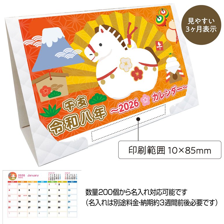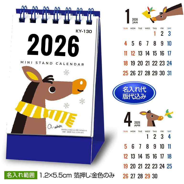 2026年カレンダーミニスタンド・うま(午)名入れ代・版代込み