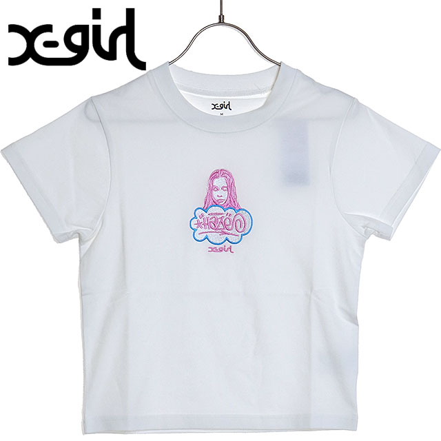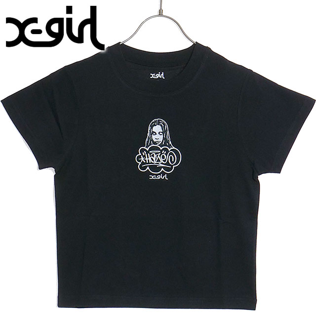 エックスガール X-girl レディース グリッターサークル バックグラウンド フェイスロゴ ショートスリーブ ベイビーTシャツ ...