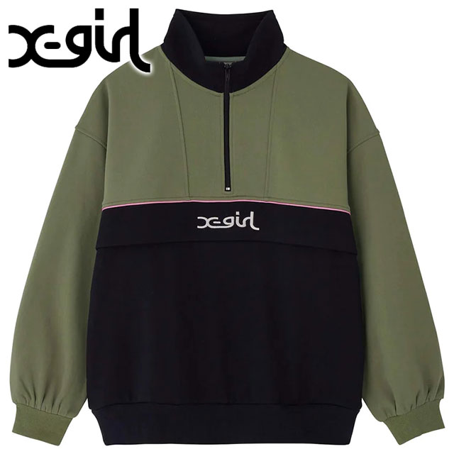 【SALE】エックスガール X-girl レディース オーバルロゴ ハーフジップスウェットトップ [105234012014 HO...
