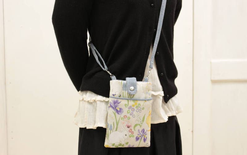 リボン刺繍 スマホポシェット 約19×13cm [Florette]