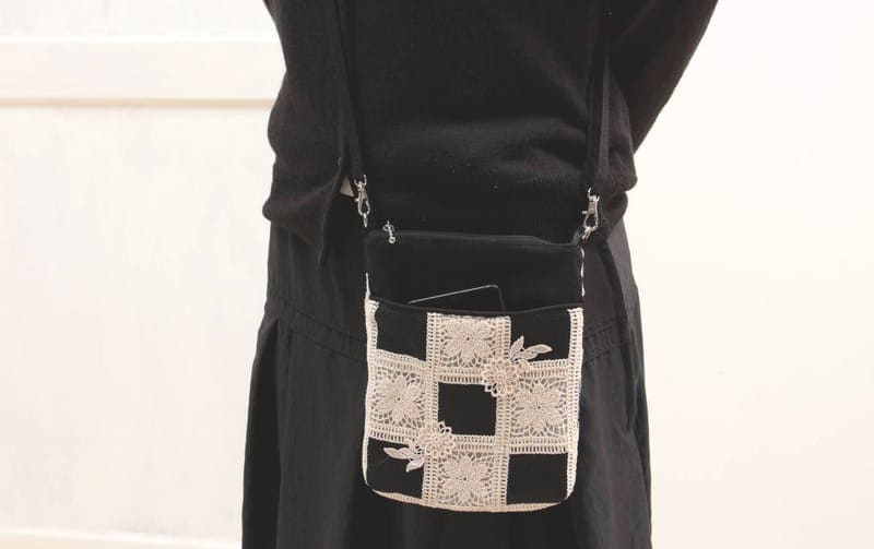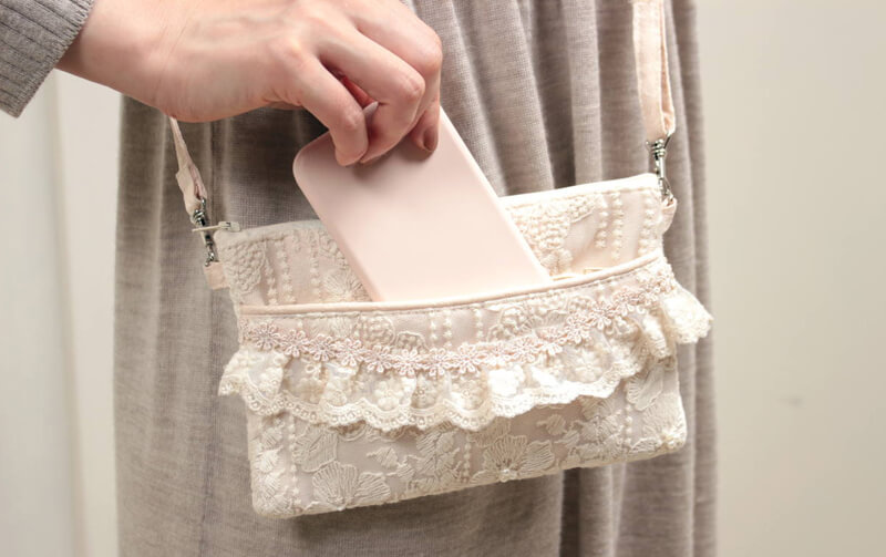 クロシェ風レースづかい スマホポシェット 約22×17×2cm [petit fenetre]