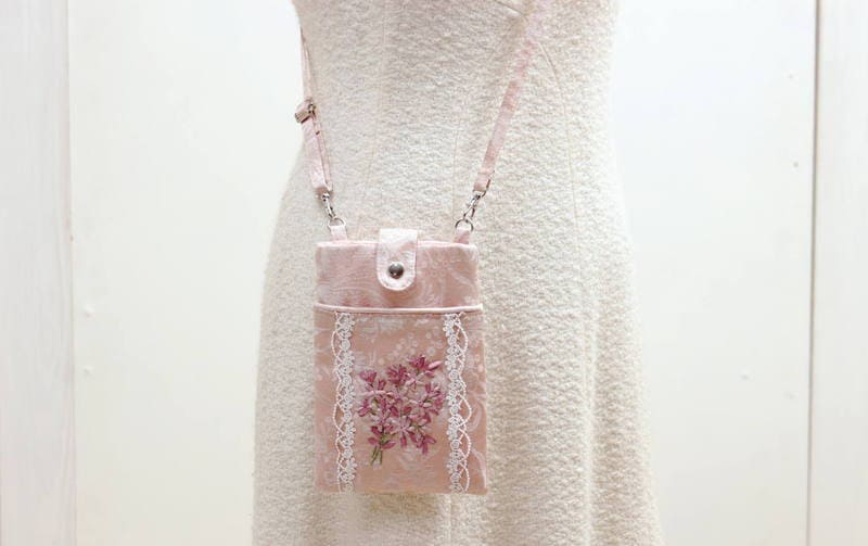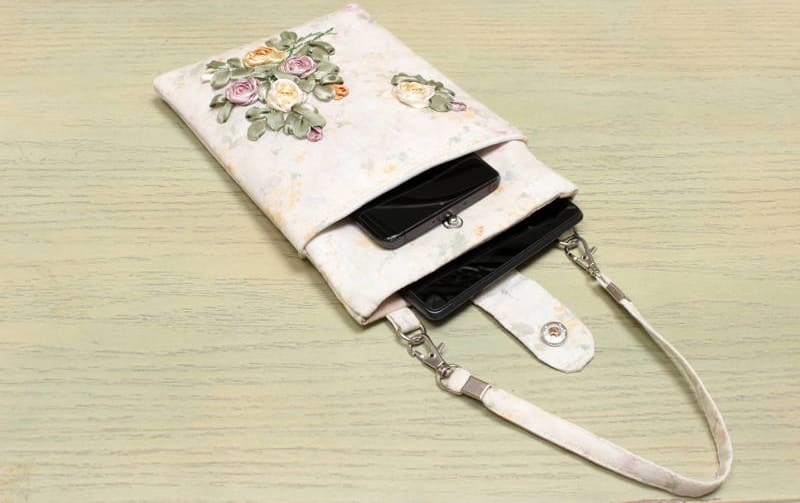 リボン刺繍 縦型スマホポシエット 約19×13cm [floral harmony]