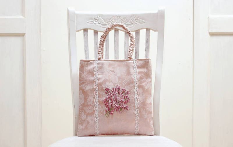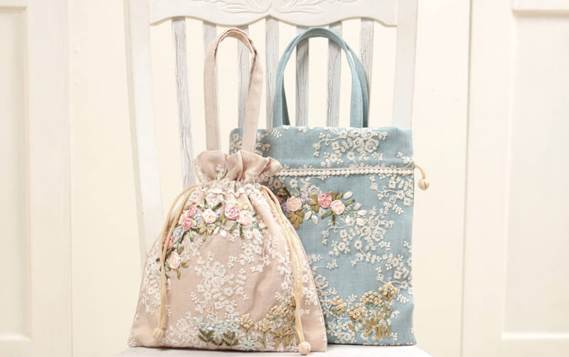 リボン刺繍 バッグ 約25×29cm [Florist]