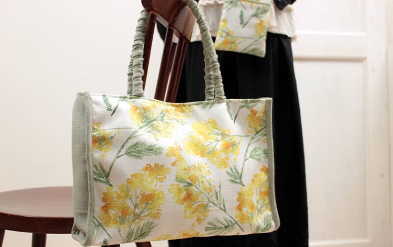 ミモザ柄プリント A4バッグ横型 約26×36×9cm [la mimosa]