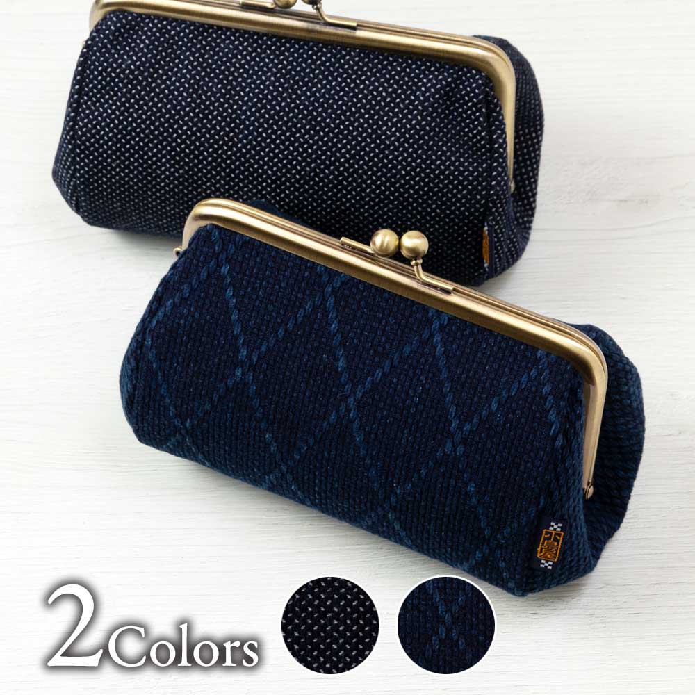 小島屋 藍染め刺子織コスメポーチ がま口タイプ 化粧品やアクセサリーケースに 武州正藍染 埼玉県の工芸品 Makeup bag m...