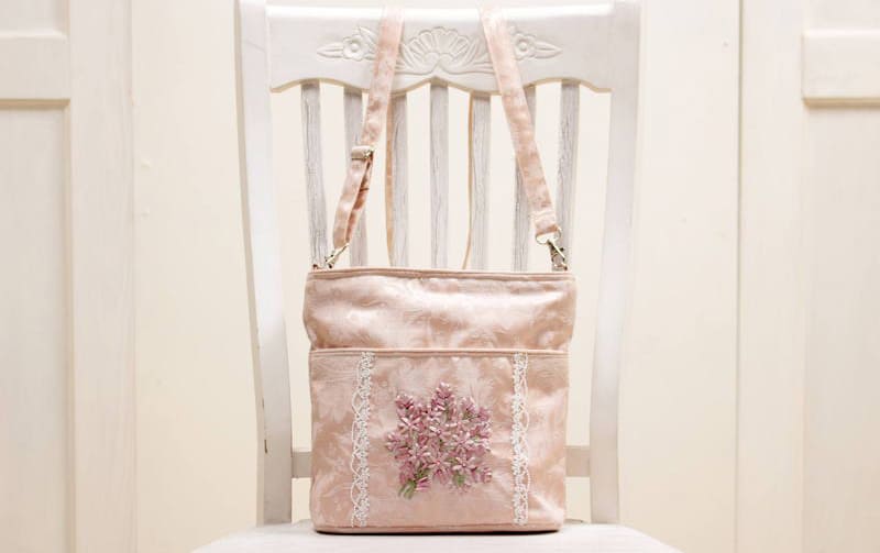 リボン刺繍 ショルダーバッグ 約25×22×7cm [Florette]
