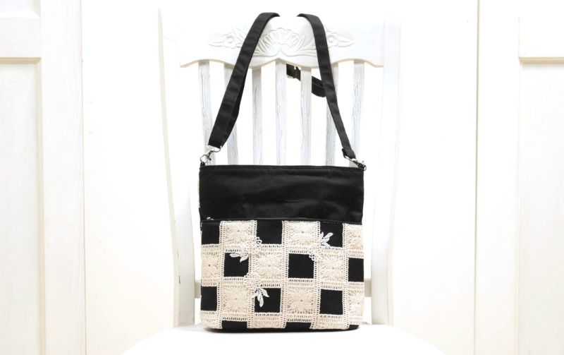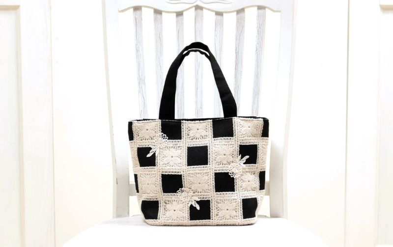 クロシェ風レースづかい A4バッグ 約35×28×7cm [petit fenetre]