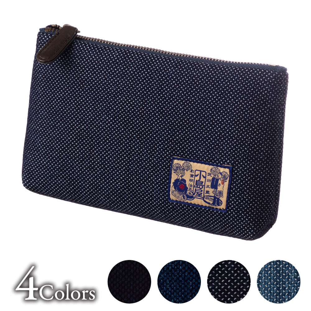 小島屋 刺子織ファスナーポーチ 化粧ポーチ 剣道着素材 武州正藍染 埼玉県の工芸品 Pouch made of indigo dy...