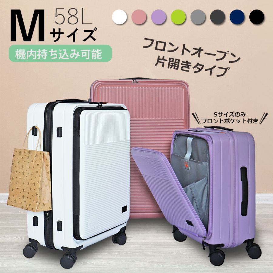 フロントオープンキャリー 3101 中型 片開きタイプ ハード スーツケース 軽量 ファスナータイプ Mサイズ【送料無料】