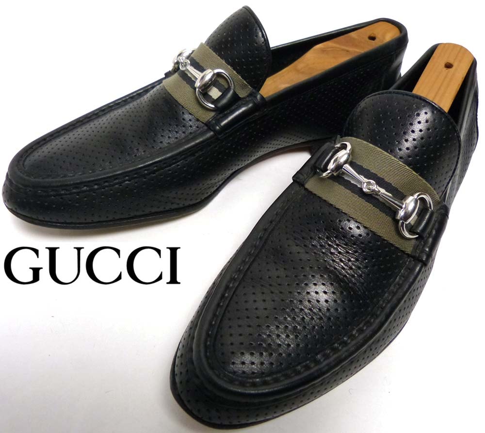 イタリア製 GUCCI グッチ パンチングレザー ビットローファー 6 1/2(25.5cm相当)(メンズ)(定価約11万円)【中...