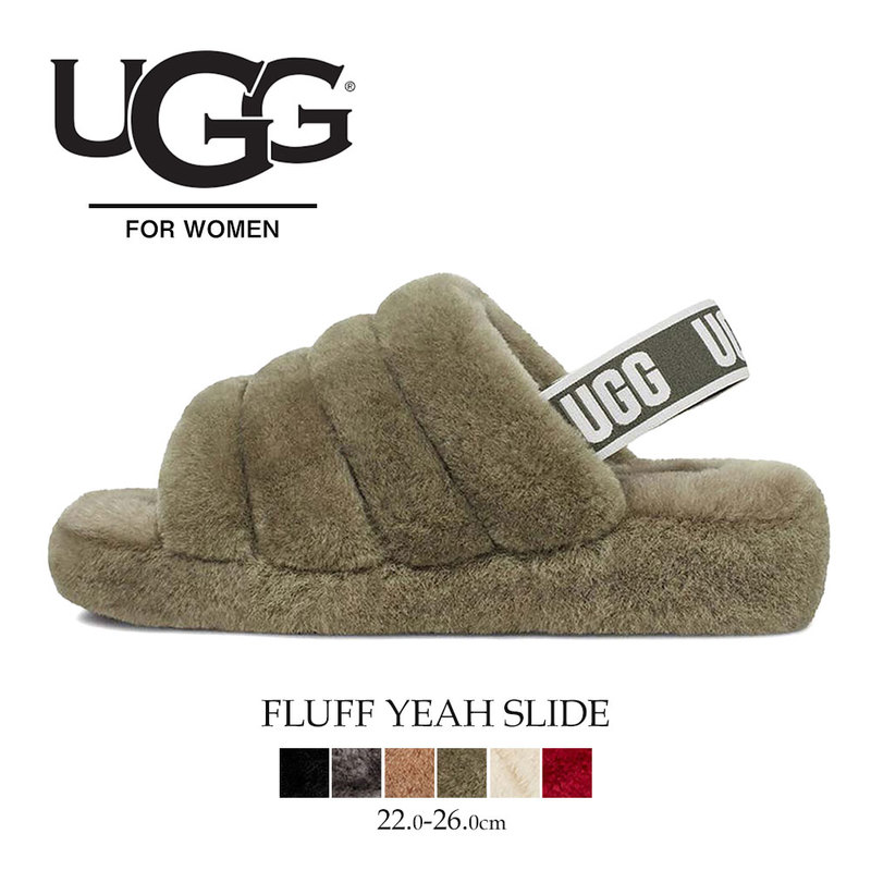 アグ サンダル ムートン フラッフ イヤー スライド レディース モコモコ サンダル バックストラップ 暖かい 秋冬 防寒 ugg...