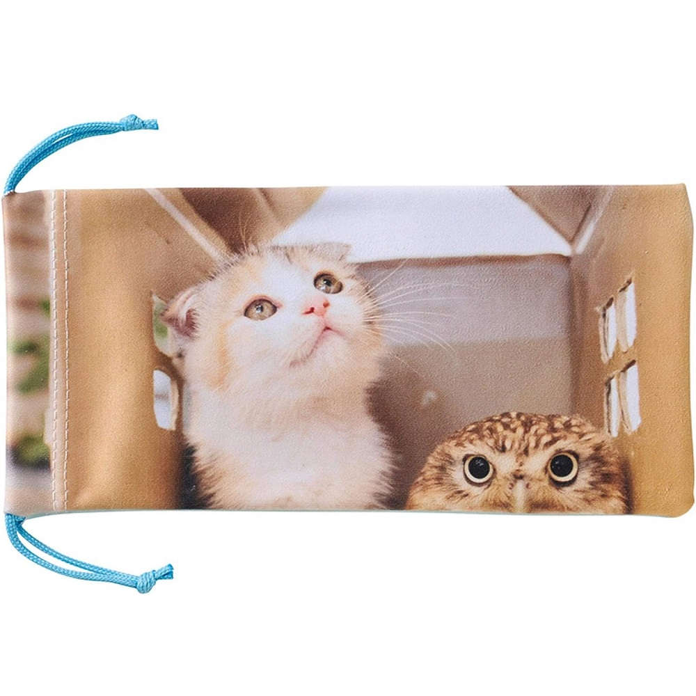 【メガネケース】 五十嵐健太『飛び猫』シリーズ ソフトメガネケース:フクロウと猫