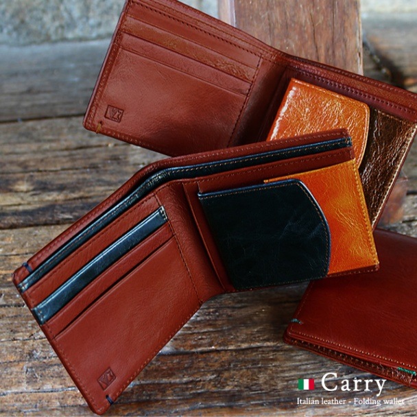 【レザージー/leather-g】イタリアンレザー二つ折り財布[car-001]
