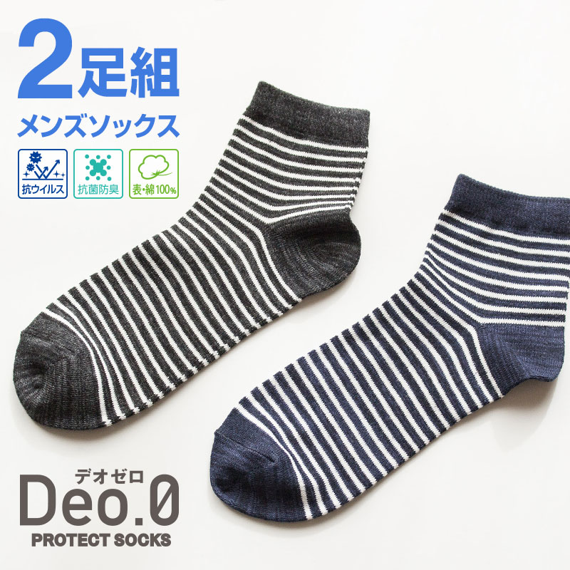 【2足組】 メンズ カジュアルソックス Deo.0(デオゼロ) 抗ウイルス加工 防臭加工 SEKマーク 25-27cm 靴下マルシ...