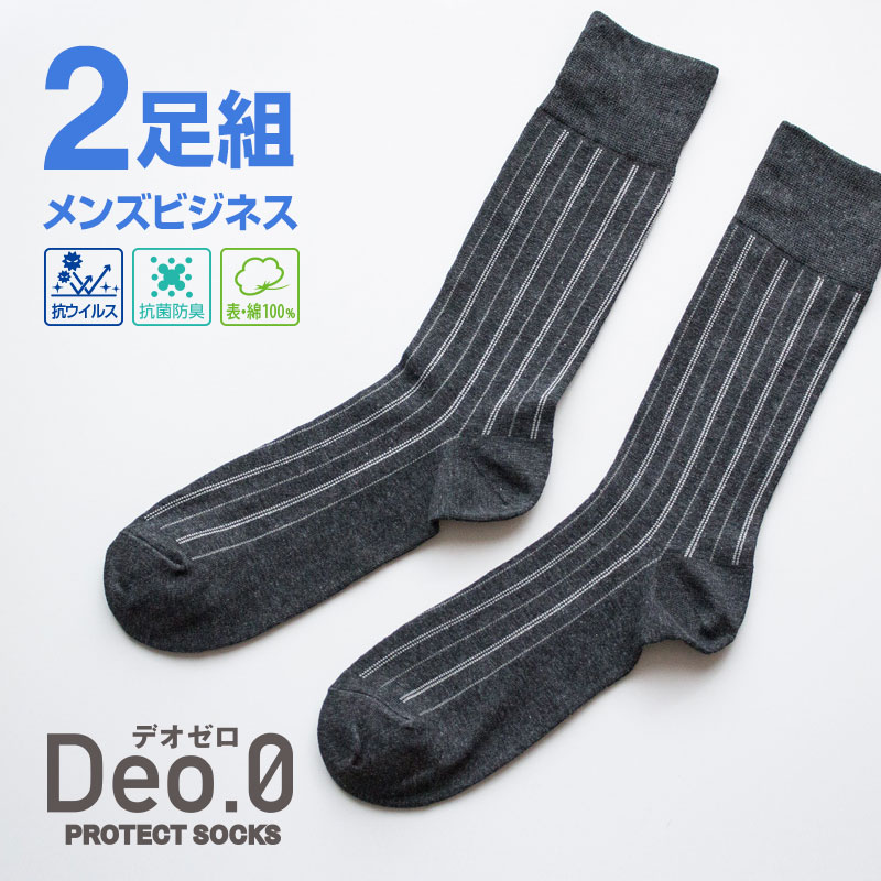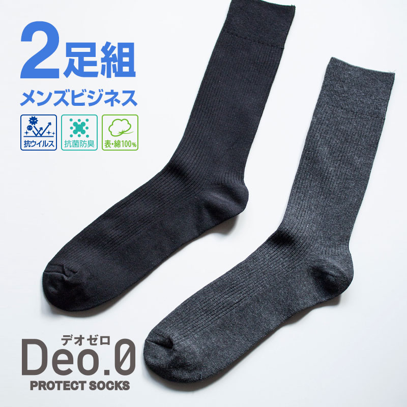 【2足組】 メンズ ビジネスソックス Deo.0(デオゼロ) 抗ウイルス加工 防臭加工 SEKマーク 25-27cm 靴下マルシェ...