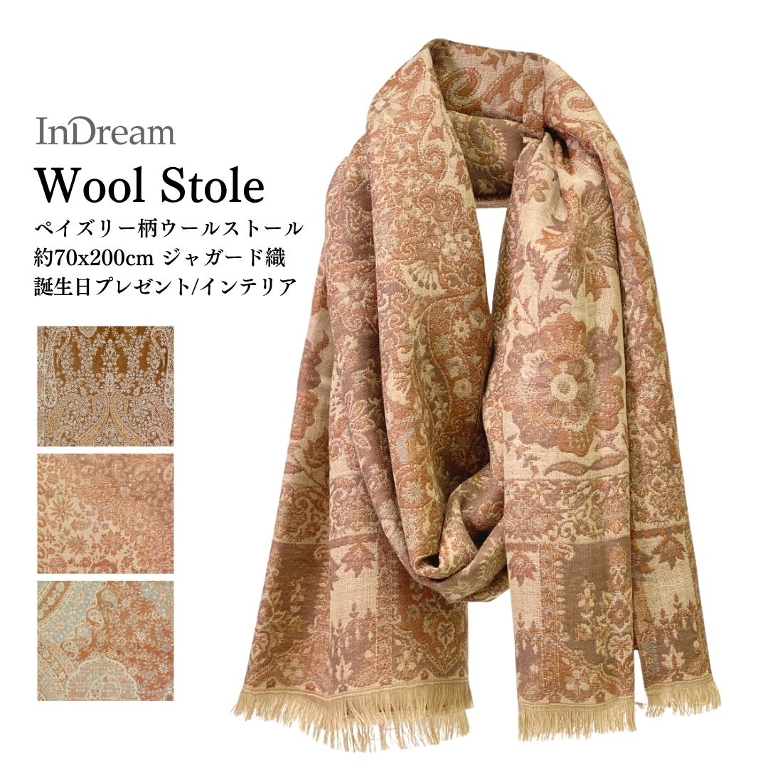 InDream ペイズリー柄 ウール ストール 大判 [72cmx206cm] ベージュ グリーン 誕生日 プレゼント クリスマス...