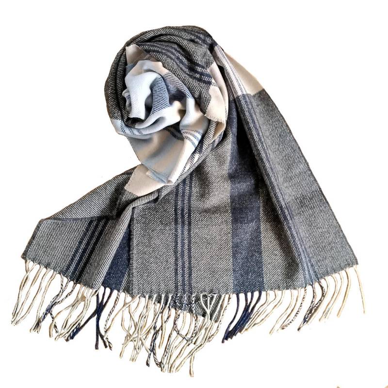 Cesare Gatti(チェザーレガッティ)マフラー ファンシーチェック グレー×サックスブルー×ベージュ カシミヤ100% c...