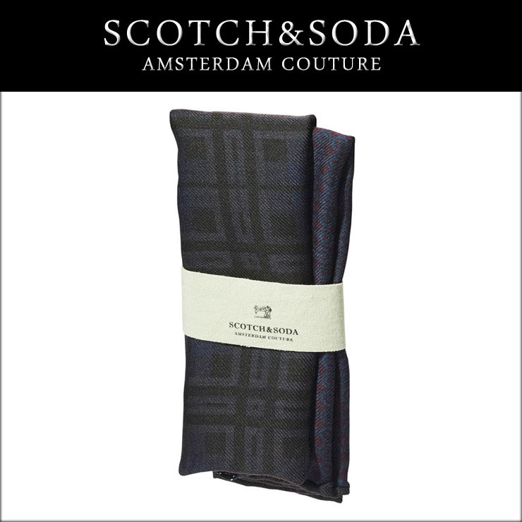 スコッチアンドソーダ ストール メンズ 正規販売店 SCOTCH&SODA 2 SIDE PRINTED WOOLLEN POC...
